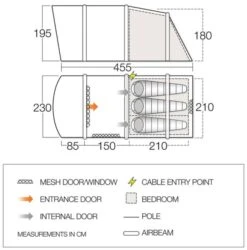 The Studio is made from Vango’s Sentinel Elite fabric to match both the polyester and polycotton tents. The Studio simply zips onto the outside of your Vango Elite Airbeam tent to give a good seal against the weather and makes it easy to pitch. The annexe comes with an Alloy pole which helps to keep the pack size down and retain stability.