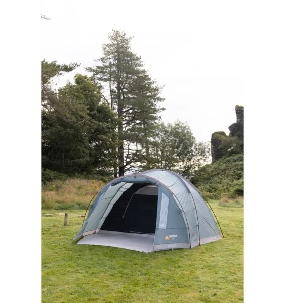 The Cragmor has Vango’s Nightfall Bedrooms which are queen sized to offer plenty of space and create a nice dark sleeping environment. Bedroom pockets can also be found in the inner to help declutter the area and give a perfect storage spot for keys, phones, and torches alike. The front door of the Vango Cragmor can be made into a canopy by purchasing some extra king poles. This allows you to increase your space away from the rain and protects the inside from getting wet. Small PVC window panels allow visibility out onto the campsite and curtains can be toggled into position to give privacy as and when needed. A hanging point for a lantern is at the centre of the tent along with mesh vents to increase airflow and reduce condensation. A linked in groundsheet comes supplied with the tent and can be easily rolled back to expose the grass beneath. High visibility guylines give stability to the tent while also being easy to see in the hope people don’t trip over them.