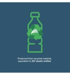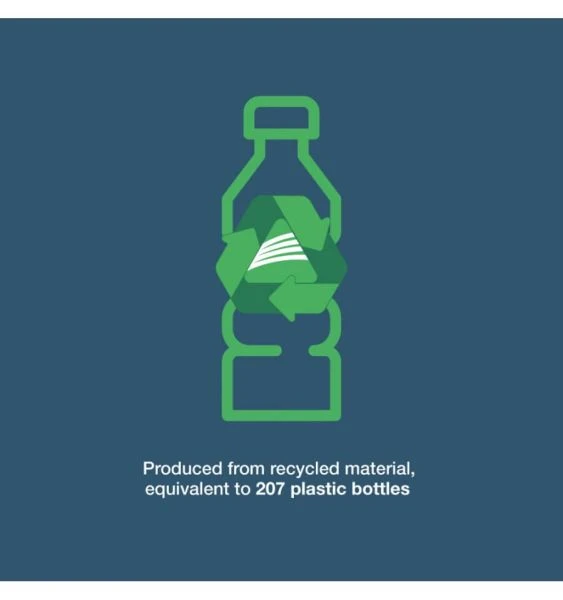- Produced from recycled material equivalent to 207 plastic bottles